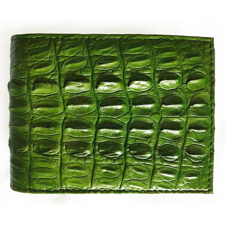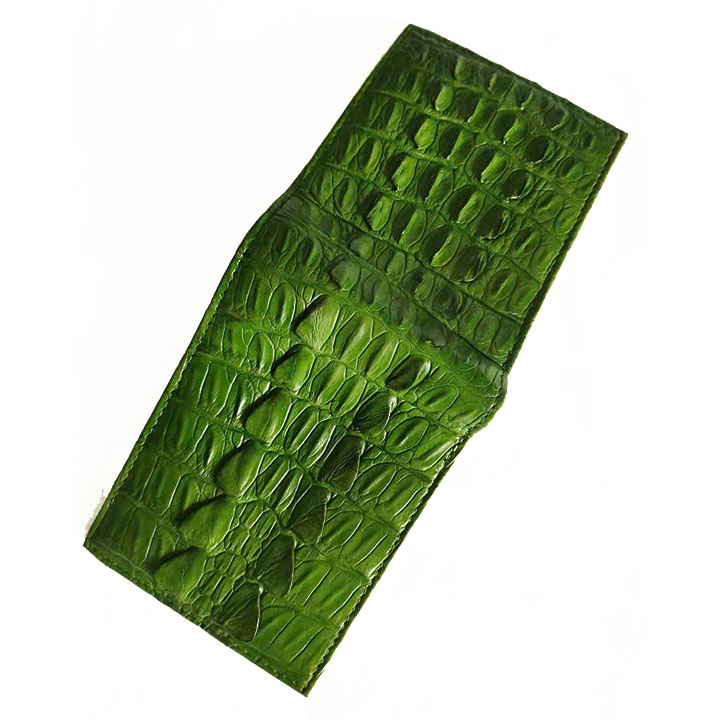 Tên sản phẩm: Bóp da cá sấu Hoa Cà da đuôi màu xanh lá 1141
